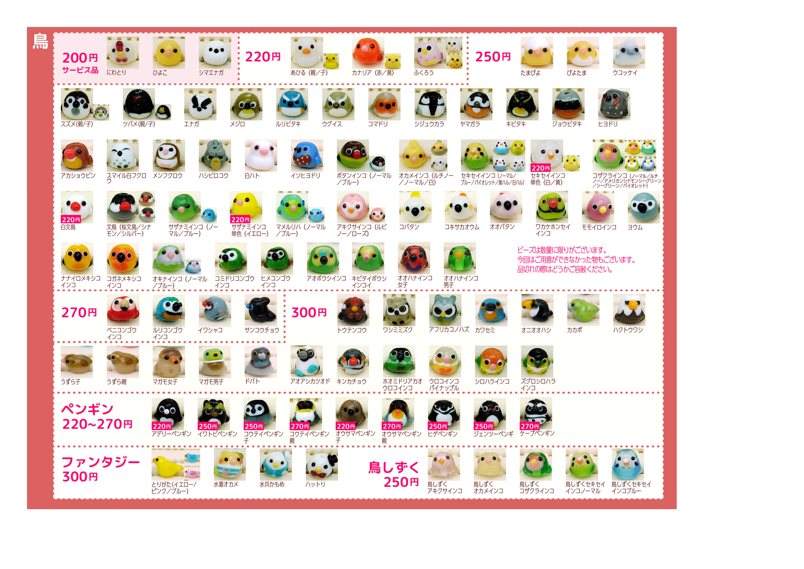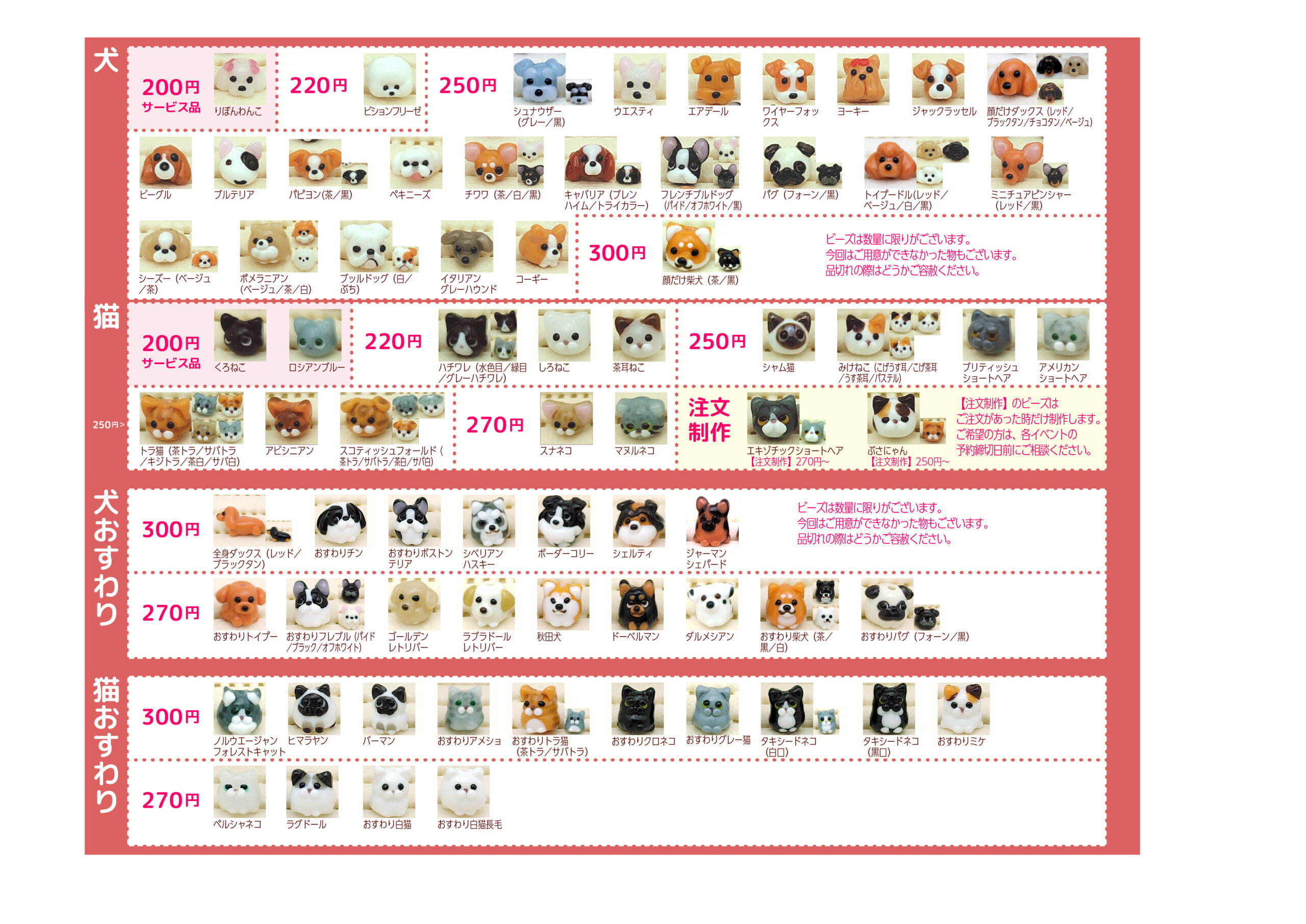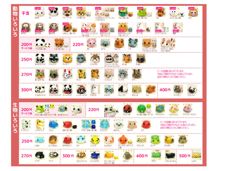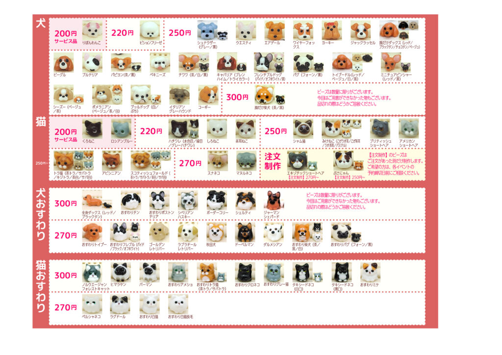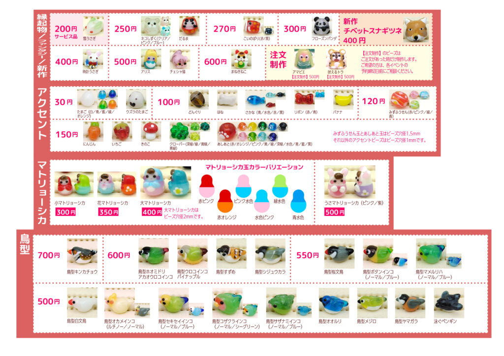 イベントで使用しているプライスリストです。通販も同じ価格です。