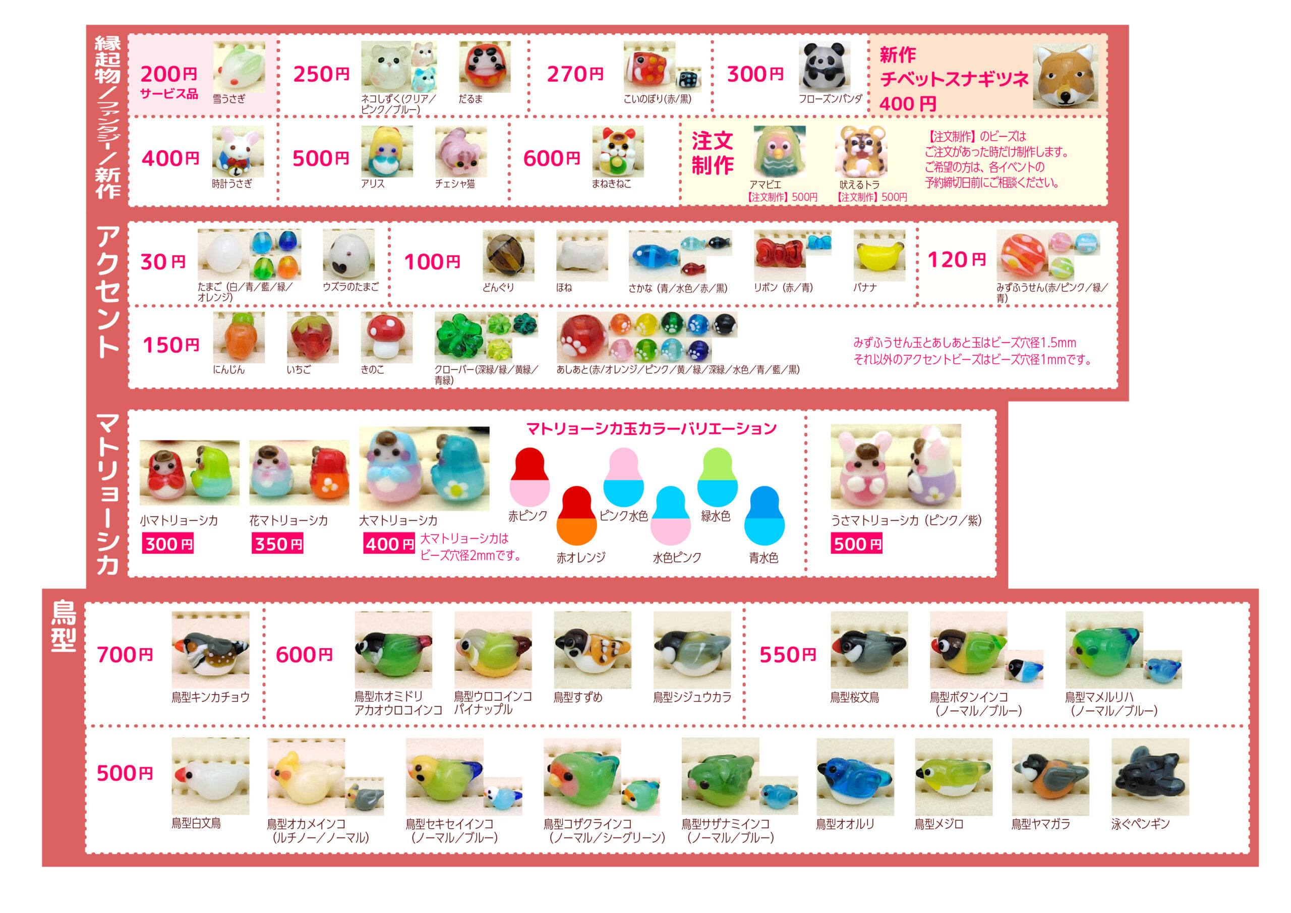 なお、今回より一部のビーズの名前を変更しております。